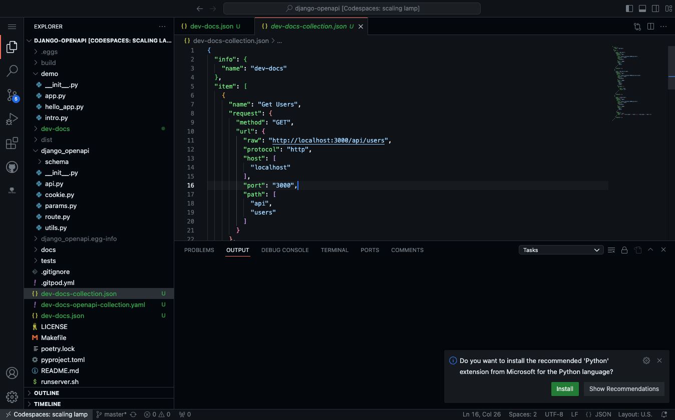 After a couple of minutes you should see two files create dev-docs-collection.json and the dev-docs-openapi-collection.yaml.