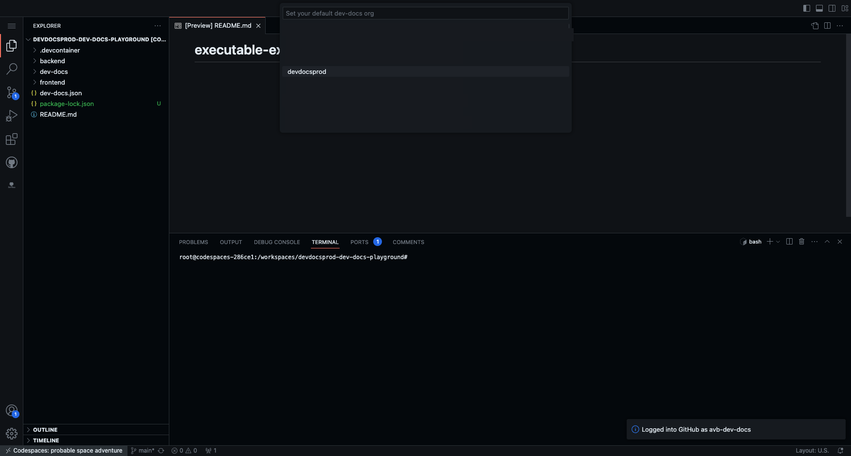 In your VS Code Editor, click on the Dev-Docs Icon on the left sidebar.